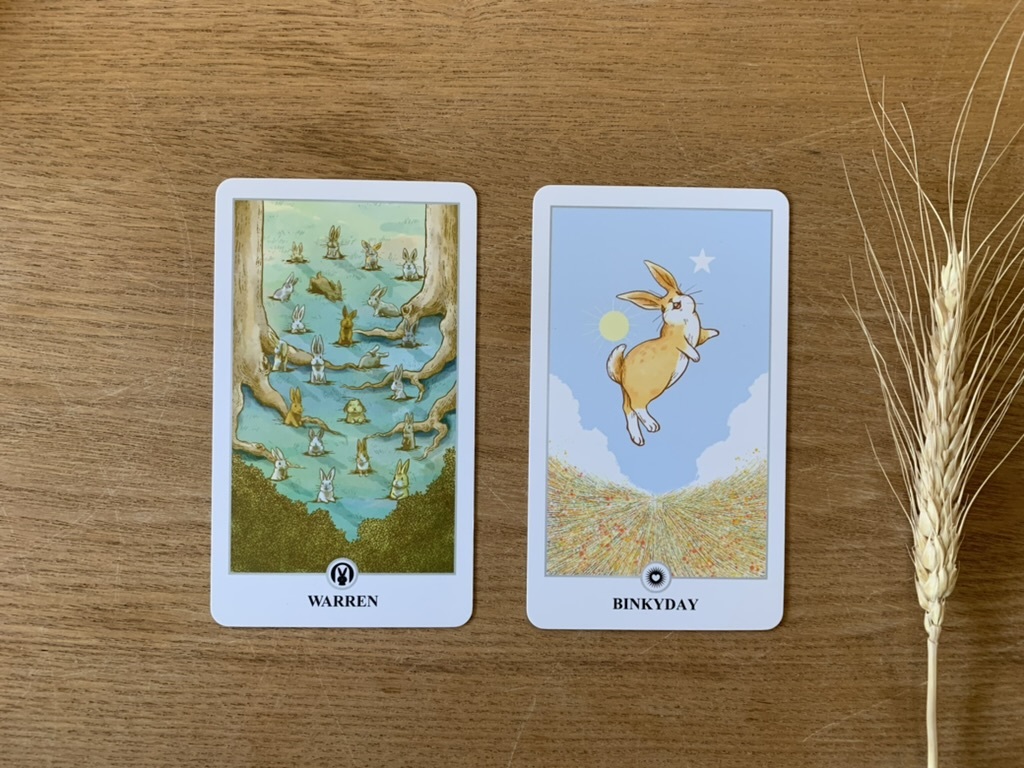 ในคำถามเดียวกันถ้าหากไพ่ใบแรกเปลี่ยนไปล่ะ เปลี่ยนจาก The Three Hares เป็น Warren ที่มีความหมายว่า “การได้เจอกับสังคมและผู้คนมากมาย” ก็จะสามารถตีความหมายรวมได้ว่า “คุณจะได้เจอกับผู้คนมากมายในปีนี้ การได้ไปอยู่สังคมใหม่ๆ ที่เต็มไปด้วยผู้คนในปีนี้แต่นั่นก็นำความสุขมาให้คุณมากๆ เลย”