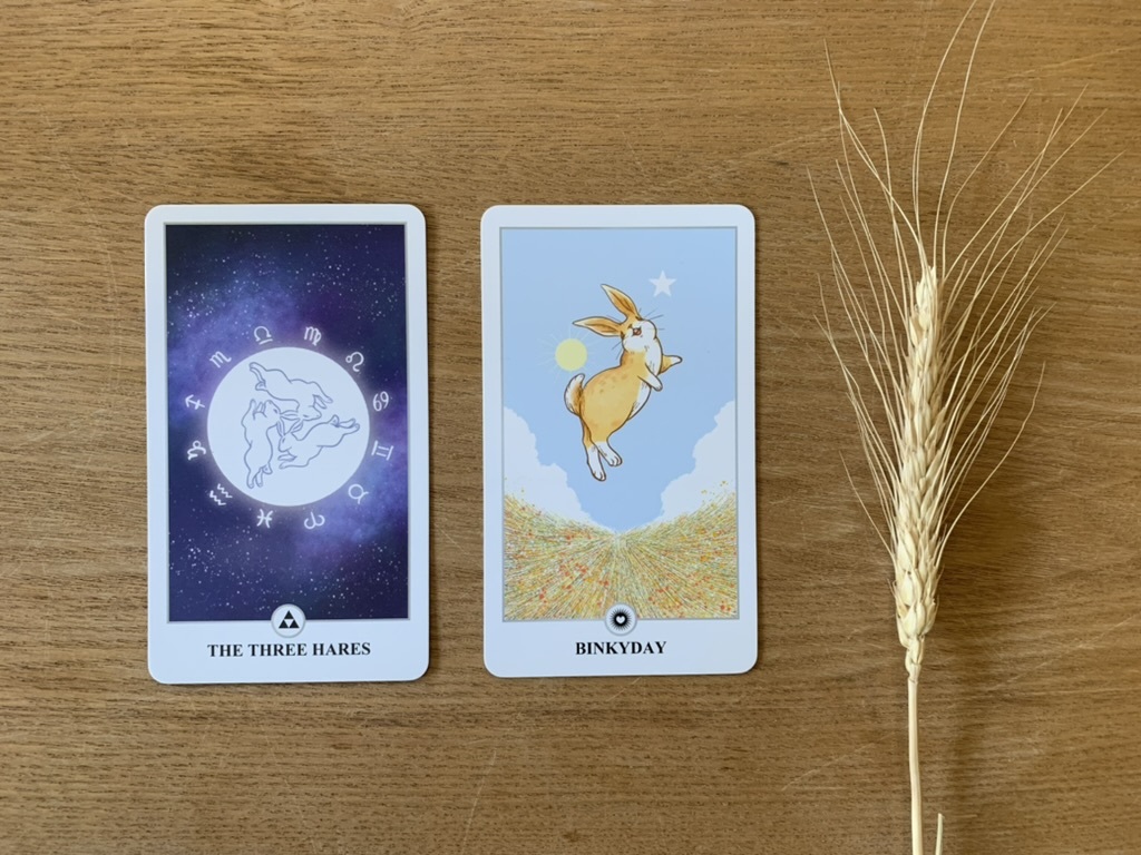บางครั้งเราอาจจะเปิดไพ่ขึ้นมาโดยตั้งคำถามก่อน เช่น “ปีนี้ฉันจะเป็นอย่างไรกันนะ?” แล้วเปิดได้ไพ่ The Three Hares ที่มีความหมายว่า “ความสุขวนๆ ไป ไม่สิ้นสุด” และอีกใบคือ Binkyday ที่มีความหมายว่า “มีความสุขจนกระโดดโลดเต้น คุมความสุขไม่อยู่กันไปเลย” ก็จะแปลความหมายรวมกันไปได้เลยว่า “คุณจะมีความสุขและวันดีๆ ที่จะทำให้คุณกระโดดโลดเต้นด้วยความสุขวนๆ ไปตลอดทั้งปี”