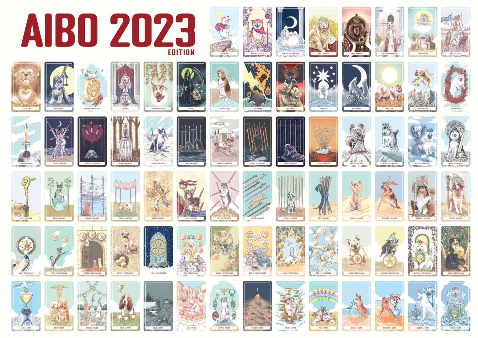 เวลาที่เราเห็นน้องหมายิ้มแล้วเราก็จะอดยิ้มตามไม่ได้ หมาเป็นสิ่งมีชีวิตที่สื่อสารอารมณ์ว่ารักมนุษย์ได้ดีที่สุดในโลก มีความฉลาดซุกซน แสนรู้และซื่อสัตย์ จึงไม่แปลกเลยที่เราจัดให้มาเป็นคู่หูของเราได้อย่างสนิทใจ “ไอ้โบ้” “AIBO” หรือชื่อที่พ้องเสียงแล้วถูกแปลงว่า “คู่หู” จึงเหมาะกับไพ่ชุดนี้มาก